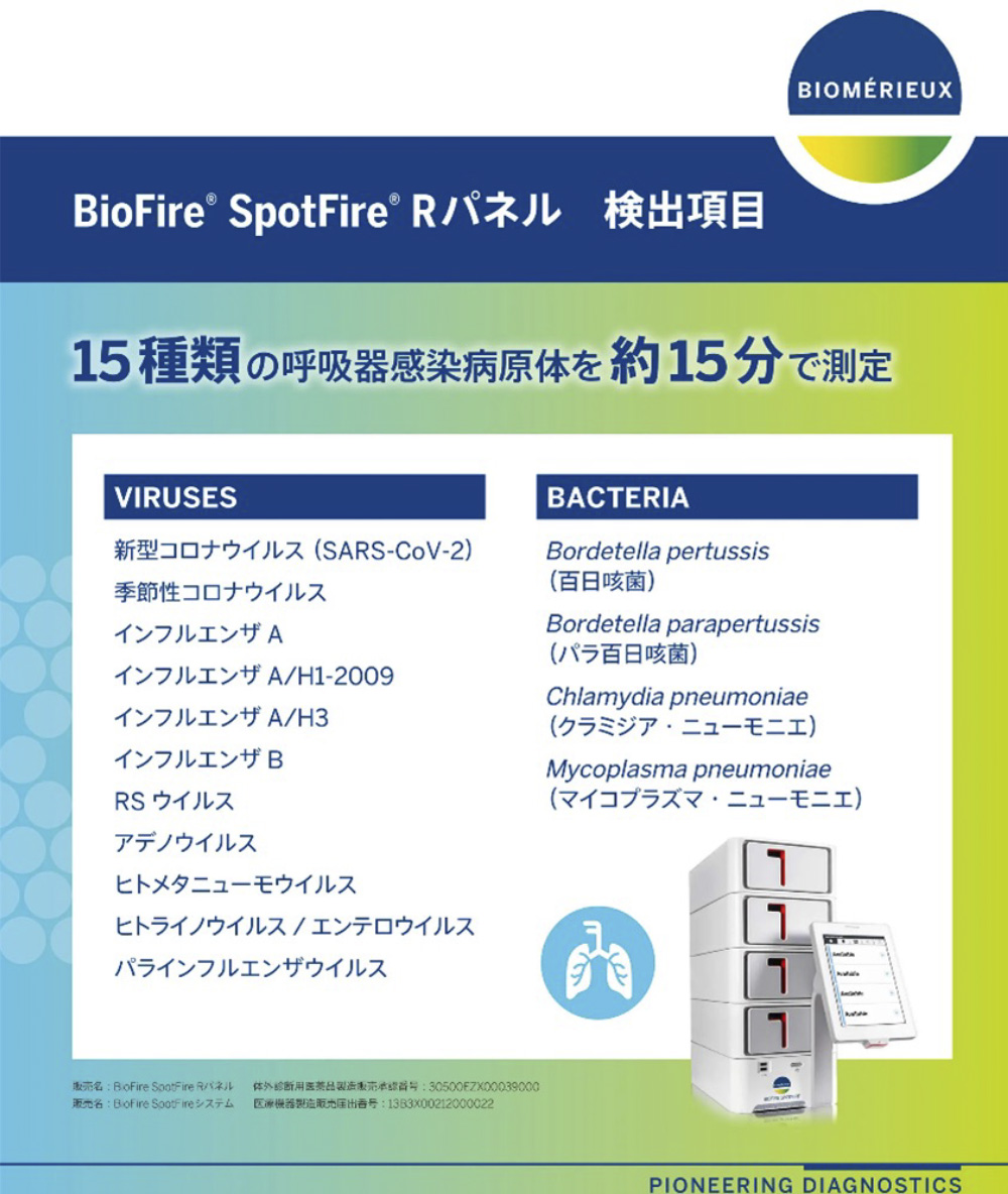 新型コロナ感染症の他、インフルエンザや百日咳など急性呼吸器症状を呈する感染症の検出が可能となります。
